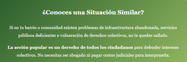 “Cuando las instituciones no responden a las necesidades ciudadanas, los mecanismos de participación y defensa judicial se convierten en la única vía para hacer efectivos los derechos colectivos.” – Veeduría Nacional de Control Social a la Gestión Pública.