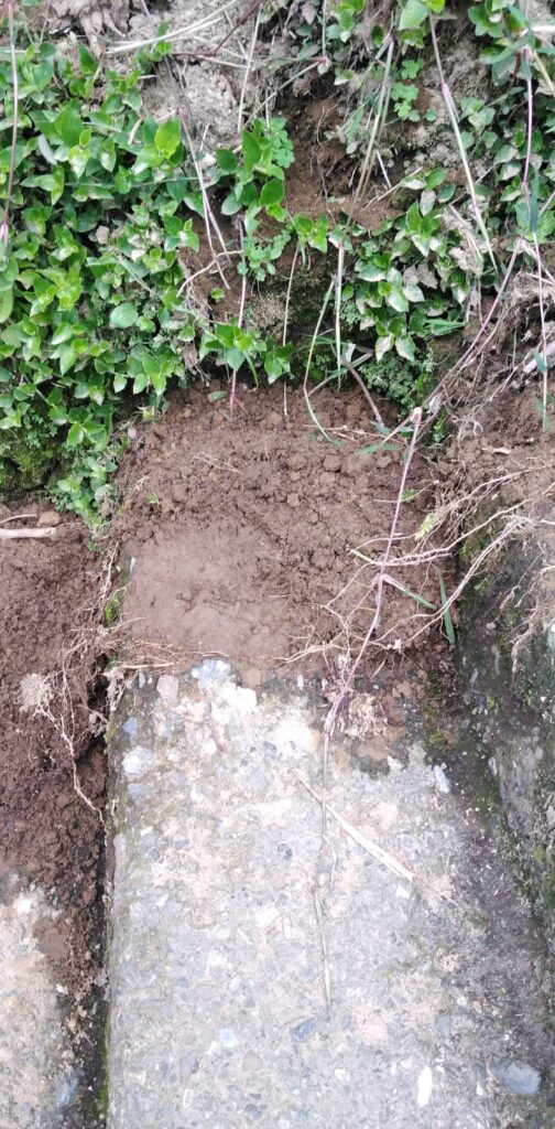 - Canales de escorrentía fisurados que no cumplían su función de conducir las aguas lluvias